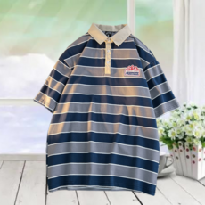 남성용 마켓A 와팬 스트라이프 카라 반팔 티셔츠
