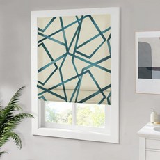 DEJAVU 로만쉐이드 린넨 커텐 커튼 창문용 로마 블라인드 청록색 십자형 기하학적 맞춤형 블랙아웃 라이트 필터링 창문 문 프렌치 도어 주방 패브릭 단열 열 Q1195393