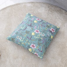 올뎃홈 화사한 플라워방석 방석커버 린넨방석 꽃무늬 커버분리형 50x50 4종택1, 꽃바람방석(솜포함)-민트