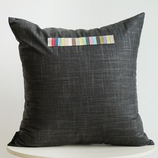 나비손길 린넨 색동띠 쿠션 솜포함, 02 블랙 + 그레이