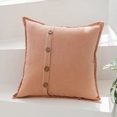 버튼 포인트 린넨 쿠션, 핑크