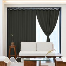 썬데코 방풍 방한 사계절 3중직 양면 암막커튼 + 압축봉 세트