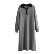 [탄탄/강추] 카라 배색 니트 롱 원피스