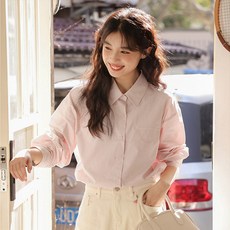 Bornoon 사계절 루즈핏 긴팔 여성 셔츠 솜사탕 컬러감