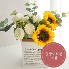 로앤하우스 조화 해바라기 모란 꽃종이화분 세트, 1개, 화이트01