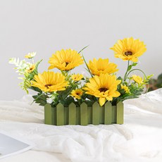 내츄럴 쁘티 해바라기 울타리 화분 set 23cm 인테리어 조화 테이블 장식 소품 금전수 금전화 꾸미기, 그린B, 1개