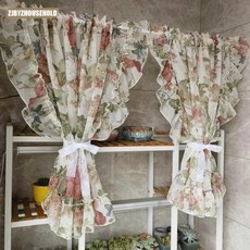짧은 1PC 홈 로맨틱 다채로운 커튼 프릴 주방 장식 그물 꽃 쉬어 얇은 문짝 캐비닛 명주 프렌치