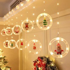 벽트리 크리스마스 장식 미니트리 스티커 리스 대형, 다채로운 커튼 조명 플러그인