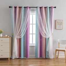 더블 레이어 별 커튼 귀여운 공주 창 할로우 아웃 다채로운 소녀 장식 보육 침실 암막