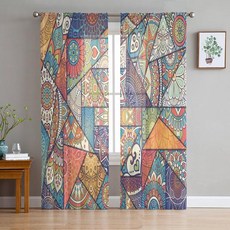 보헤미안 삼각형 블라인드스냅 다채로운 커튼 거실 투명 얇은 명주 그물 창 깎아 지른듯한 침실 액세서리 장식, W135 x H114cm, LEX07824, 1개