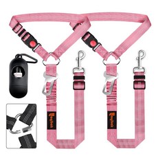 자동차용 탈착식 강아지 안전 벨트 하네스 3 in 1 애완견 자동차 안전벨트 목줄 머리 받침대 및 반사 효과에 고정되는 laqibak 구속 조절 가능한 번지 테더 2개 배변, 핑크 2개
