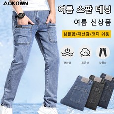 Giwalk 여름 스판 청바지 스판 일자 남자 청바지 빅사이즈 와이드청바지 얇은 쿨링 데님 팬츠
