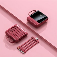 신지모루 포터블 미니 보조배터리 + C타입 케이블, 핑크